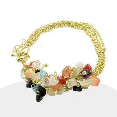 Pulsera multi cadenas con piedras colores Baño de Oro Amarillo