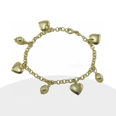 Pulsera cuatro corazones y bolitas Baño de Oro Amarillo