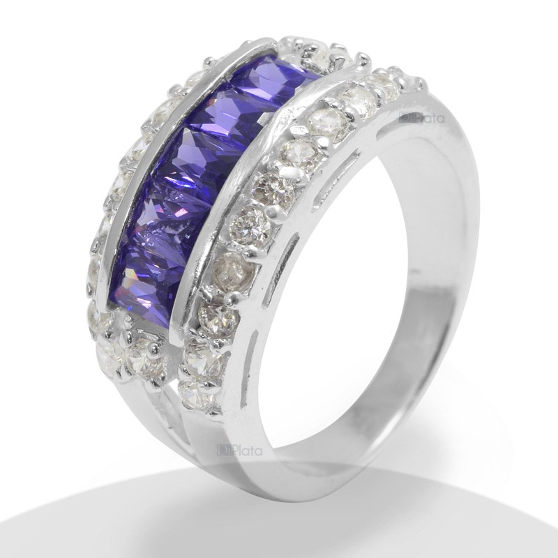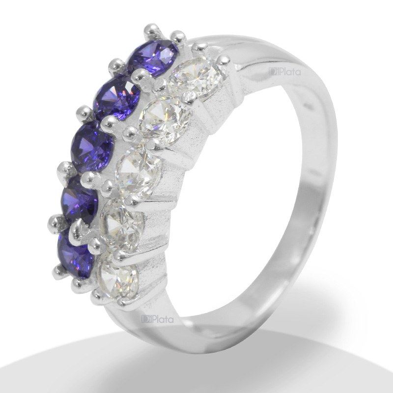 Anillo circón color rosado y micro circones laterales color cristal Plata 925