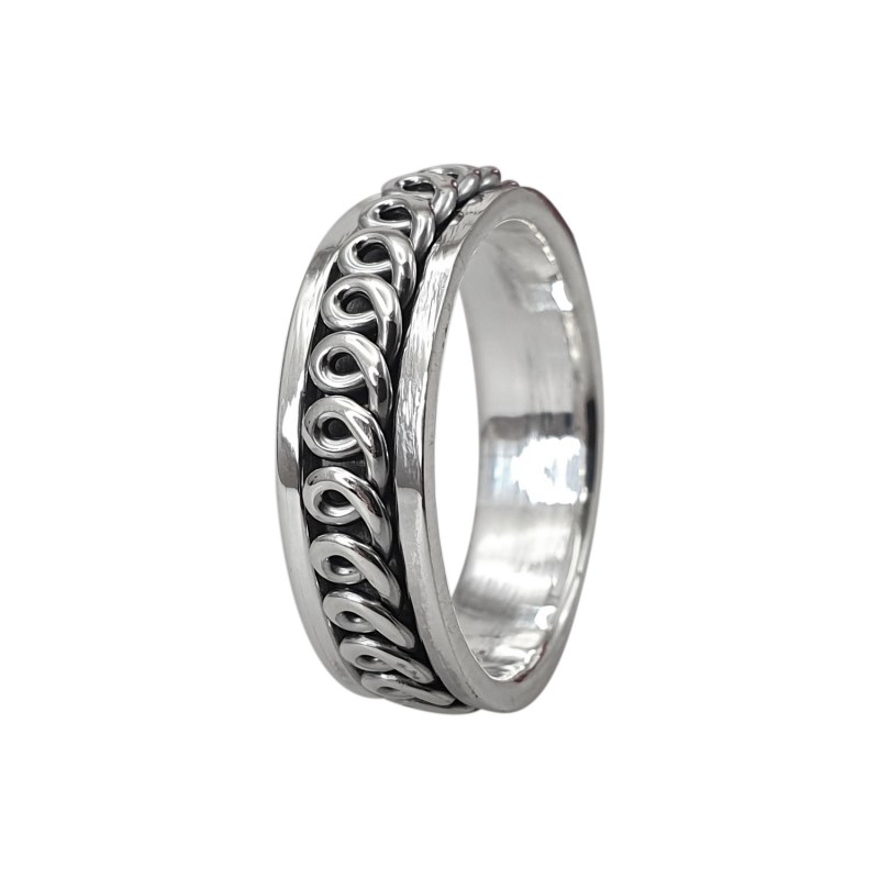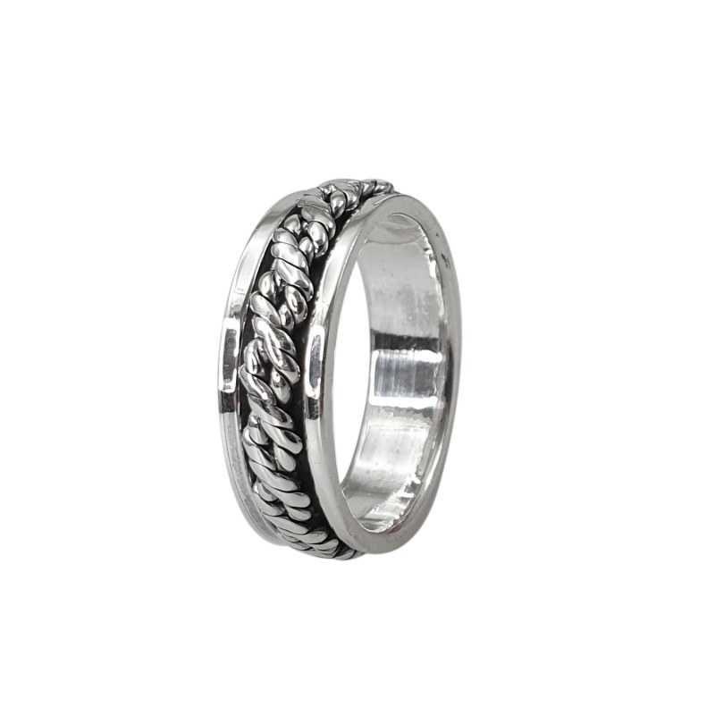 Anillo masculino anti stress centro cordón torcido Plata 925