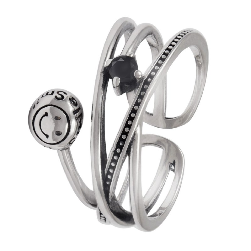 Anillo Envejecido Carita feliz Ajustable plata 925