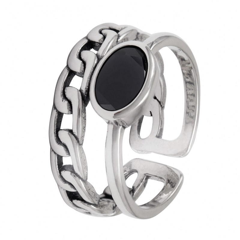 Anillo Envejecido ajustable diseño cadena plata 925