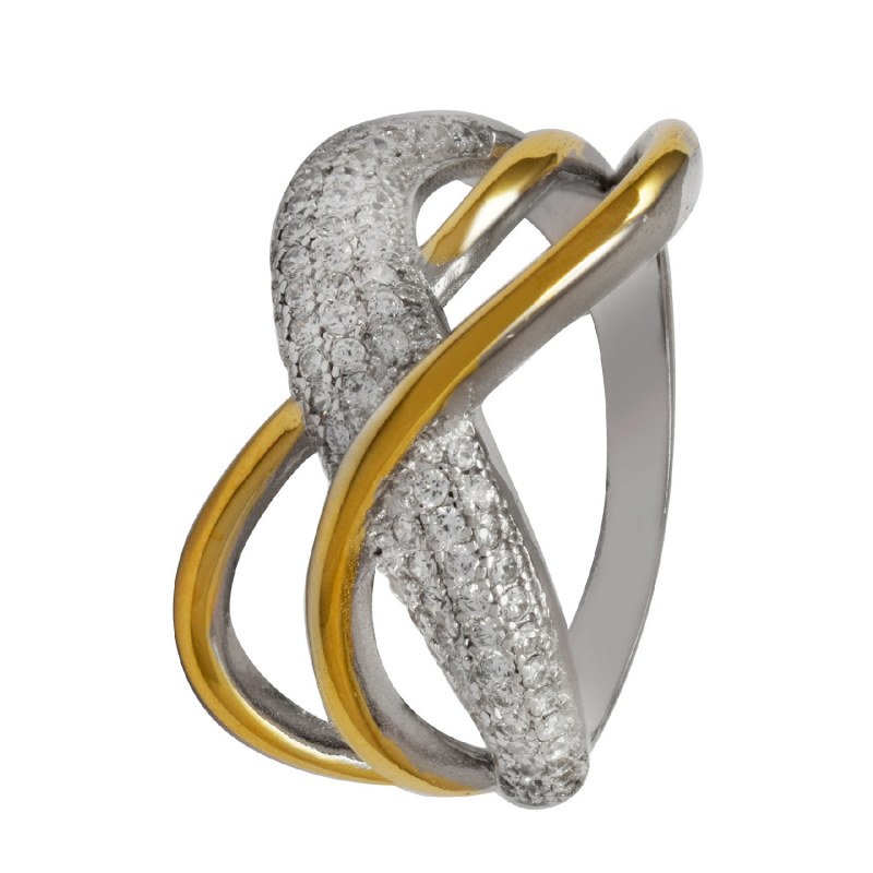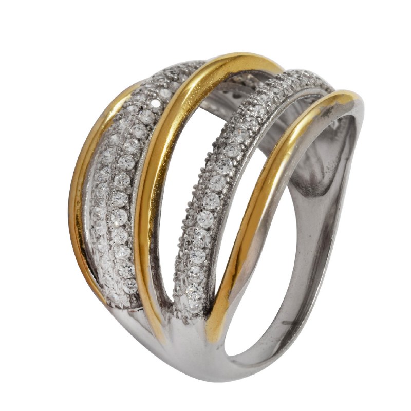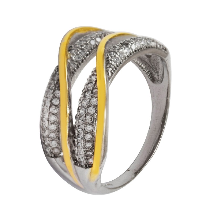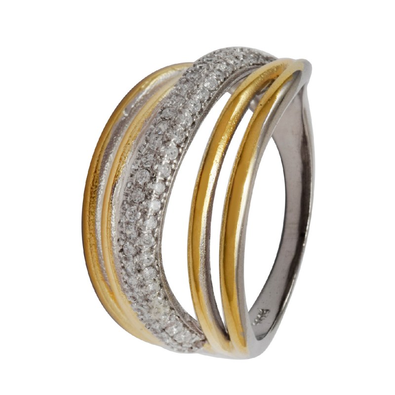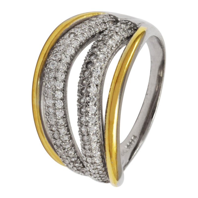 Anillo micro circones baño de oro y plata 925