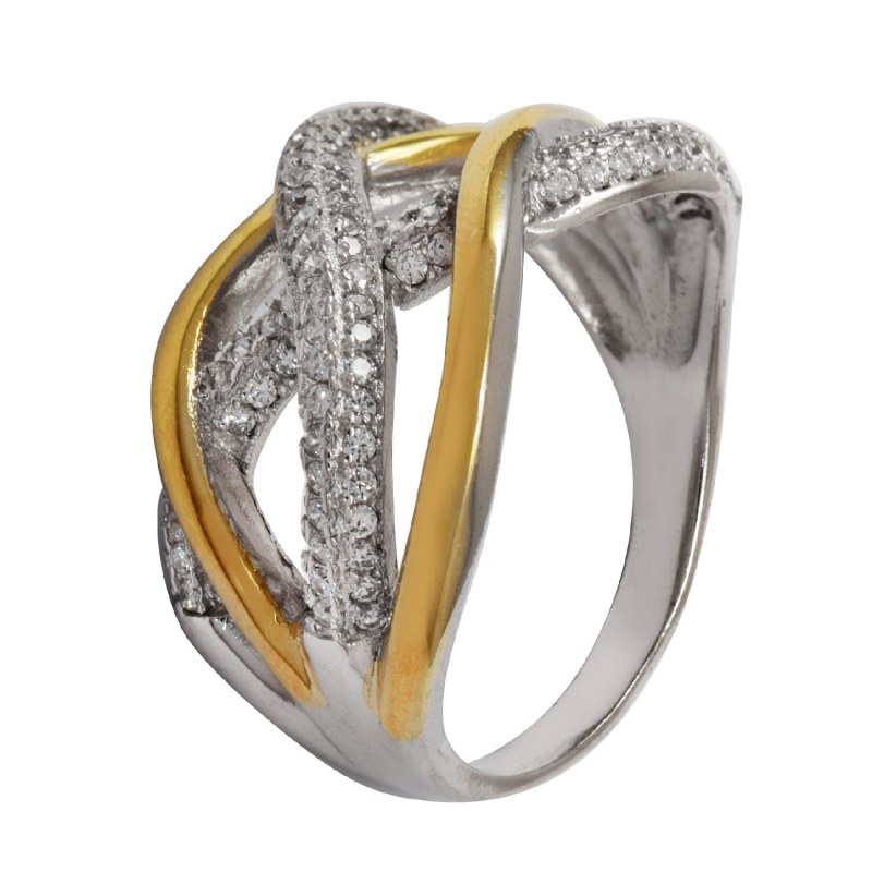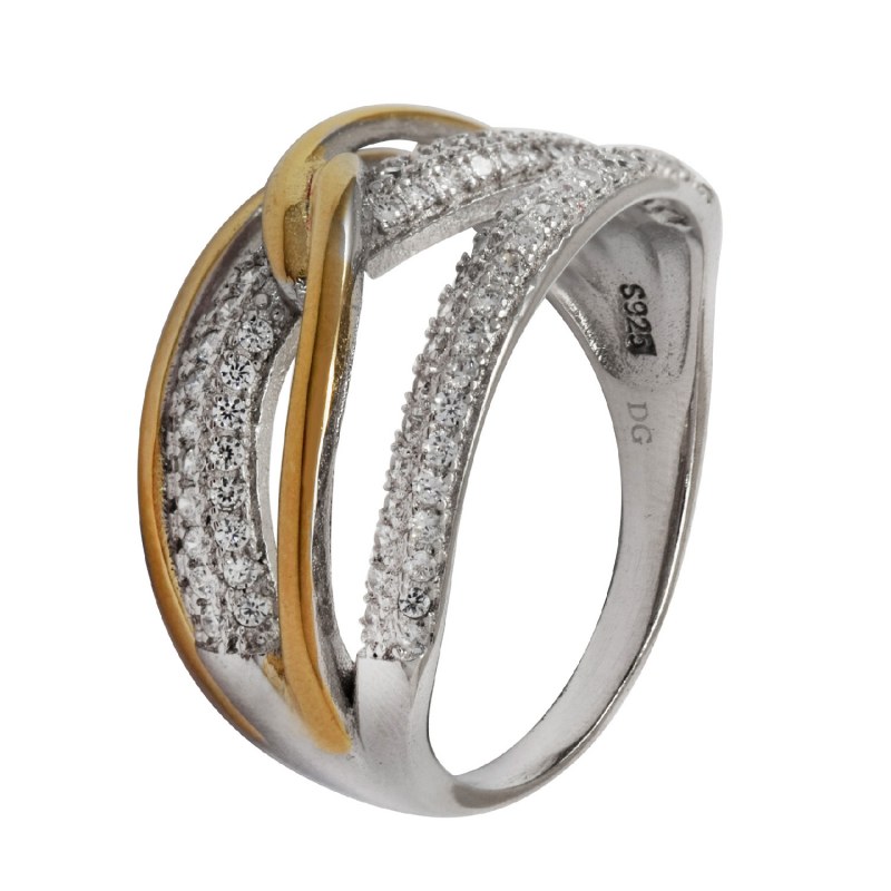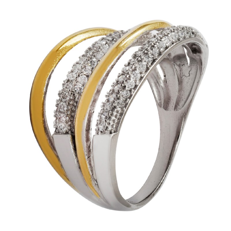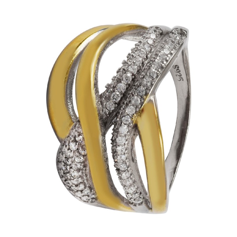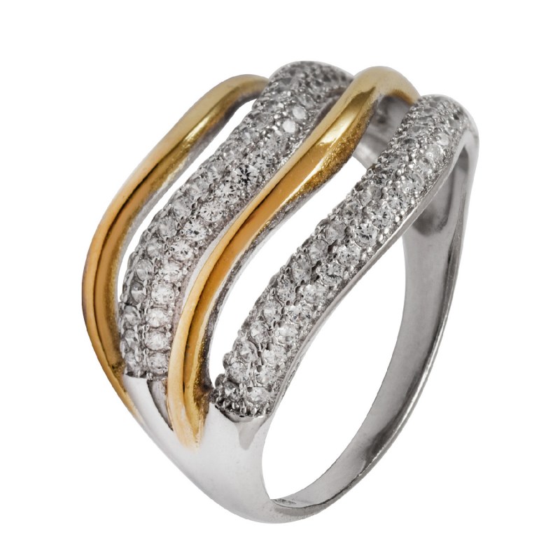 Anillo micro circones baño de oro y plata 925