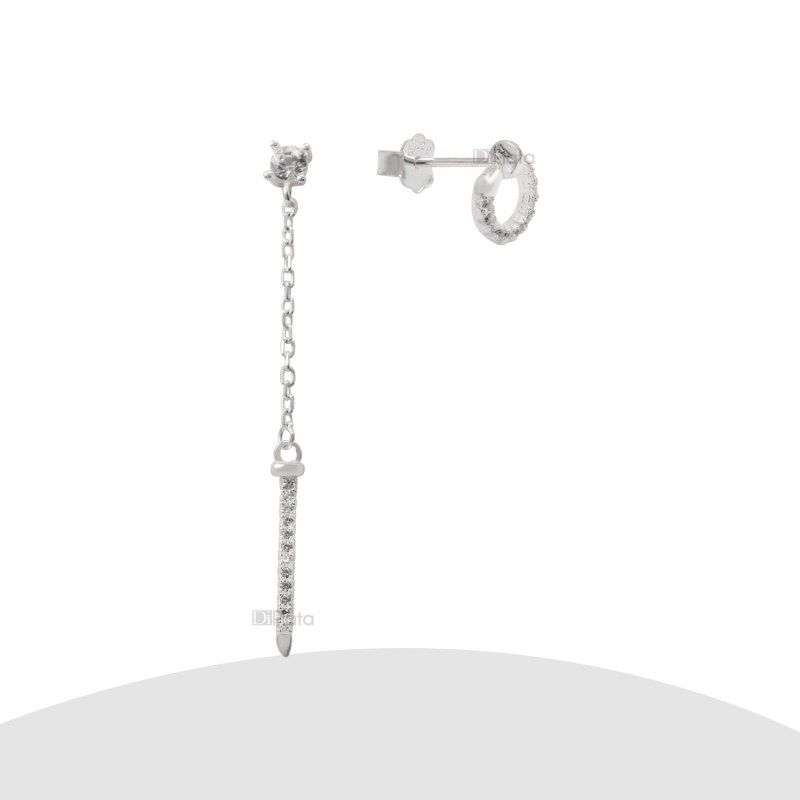 Aro apegado canasto cuadrado con circón redondo 8x8 plata 925