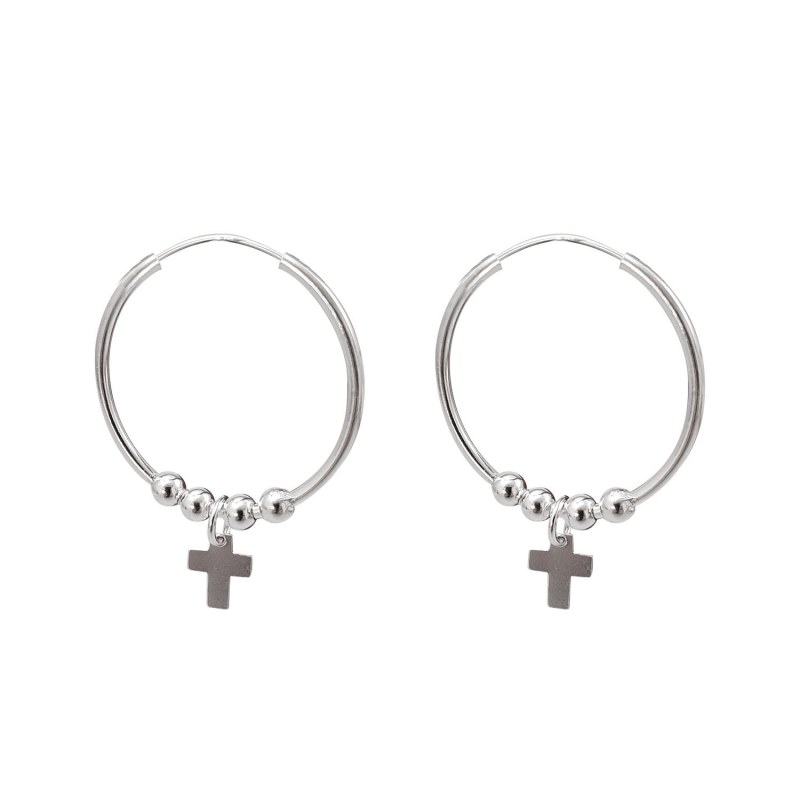 Aro argolla bolitas y cruz colgante diámetro: 30mm x 3mm Plata 925