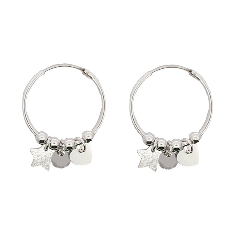 Aro argolla bolitas corazón estrella y circulo colgante diámetro: 25mm Plata 925