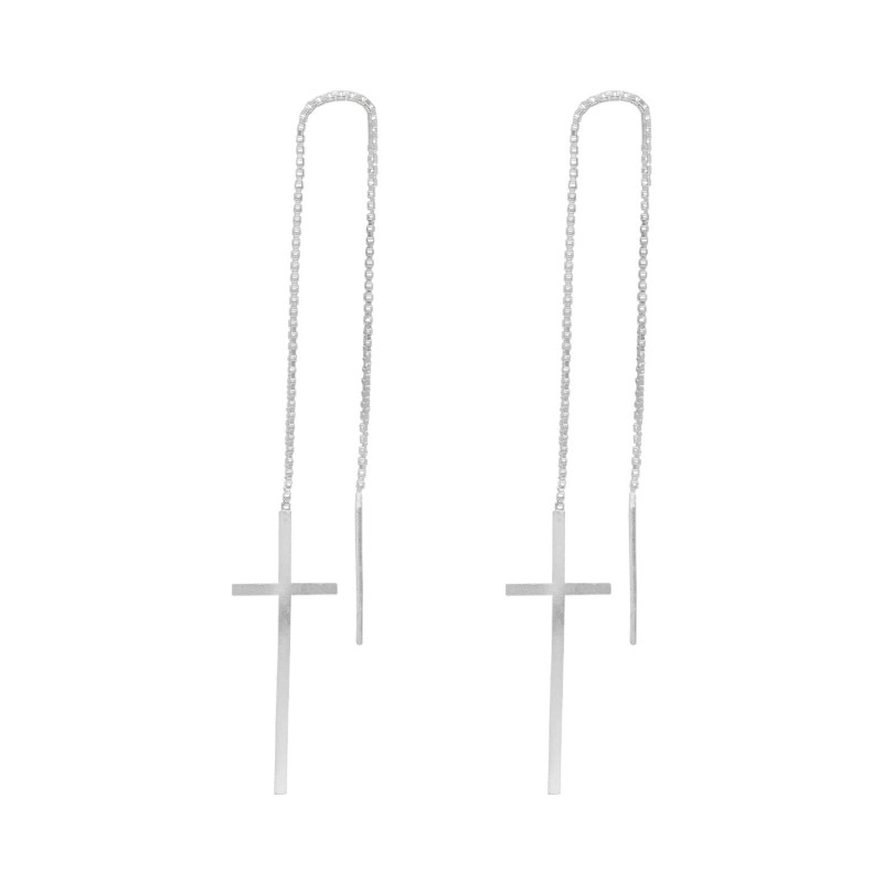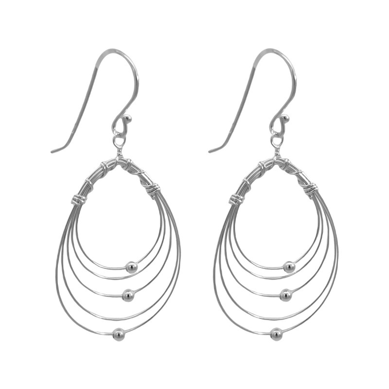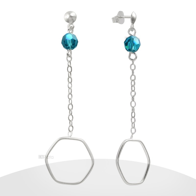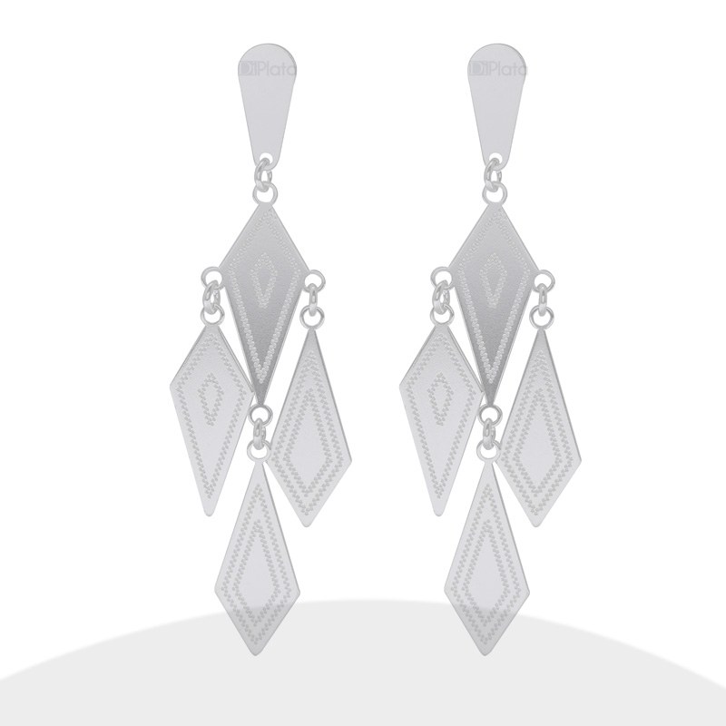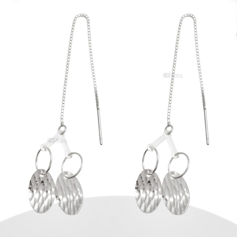 Aro largo argolla apegada y tres colgantes enlazadas Plata 925
