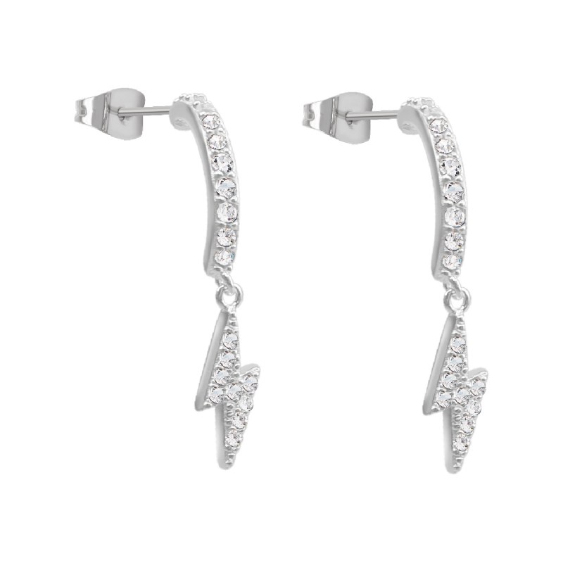 Aro curvo con rayo colgante y micro circones color cristal Plata 925