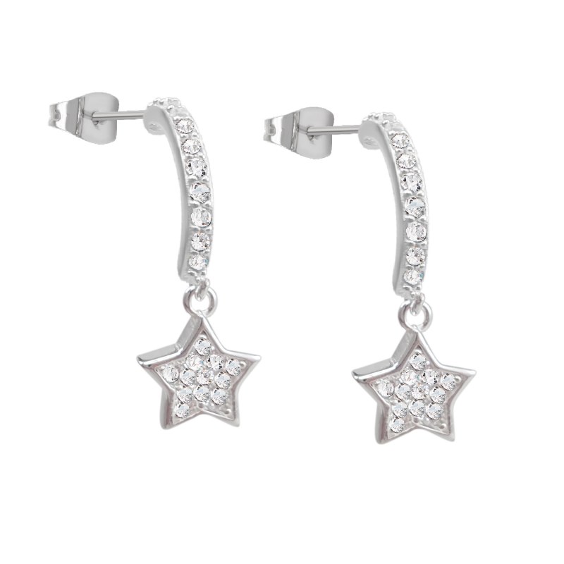 Aro curvo con estrella colgante con micro circones color cristal Plata 925