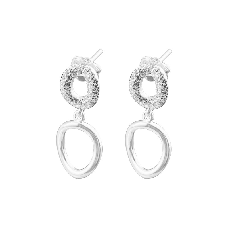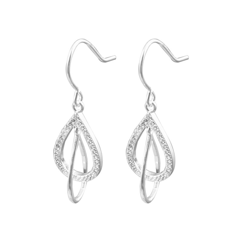 Aro dos gotas enlazadas lisa y con micro circones color cristal Plata 925