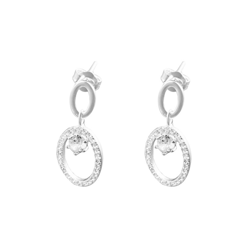 Aro circulo ovalado con micro circones color cristal Plata 925