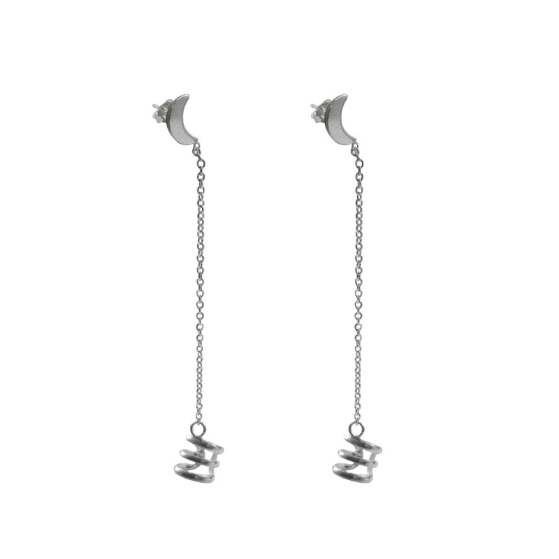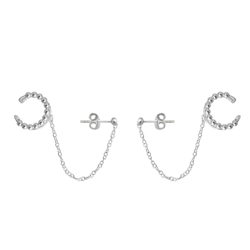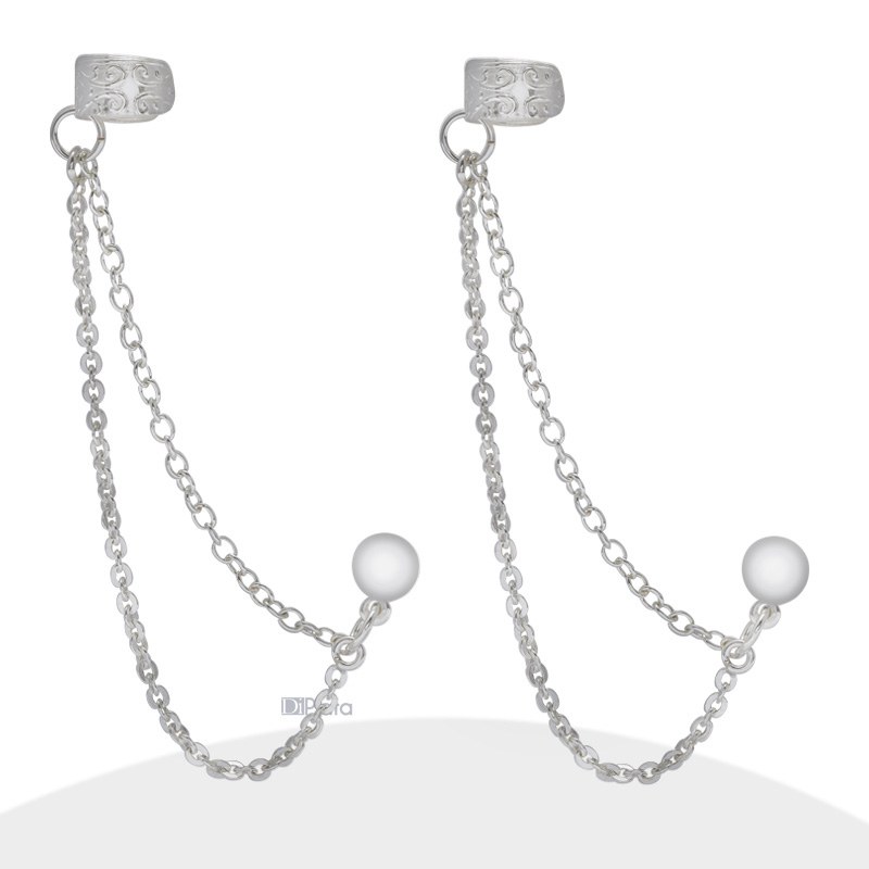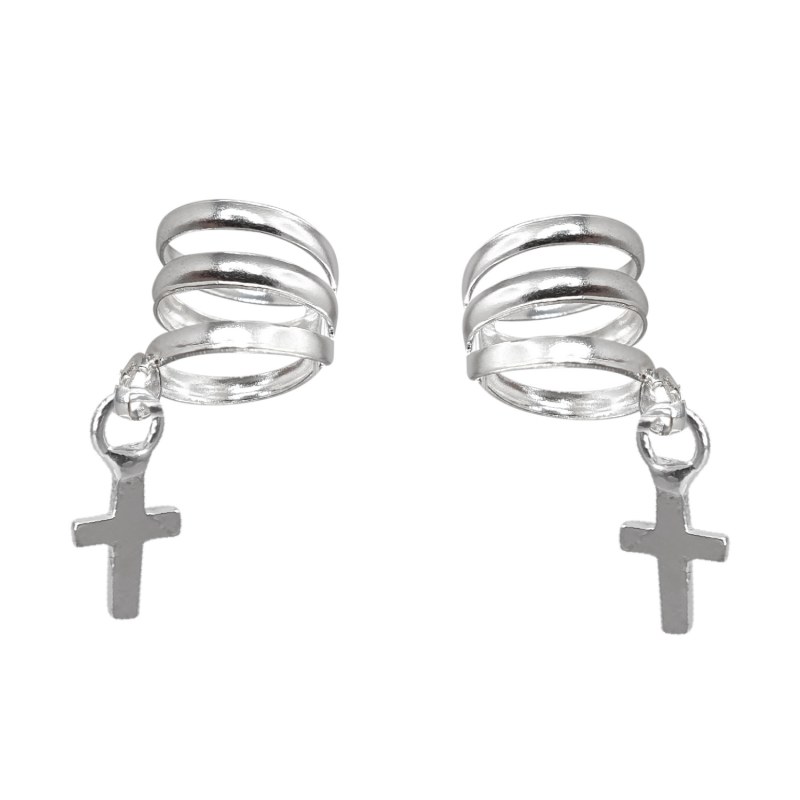 Aro bidú liso earcuff tres líneas con cruz colgante Plata 925