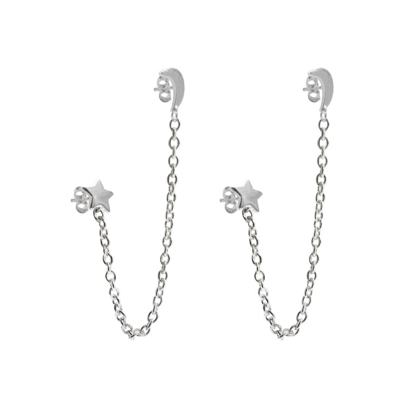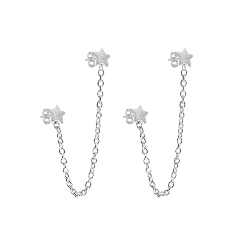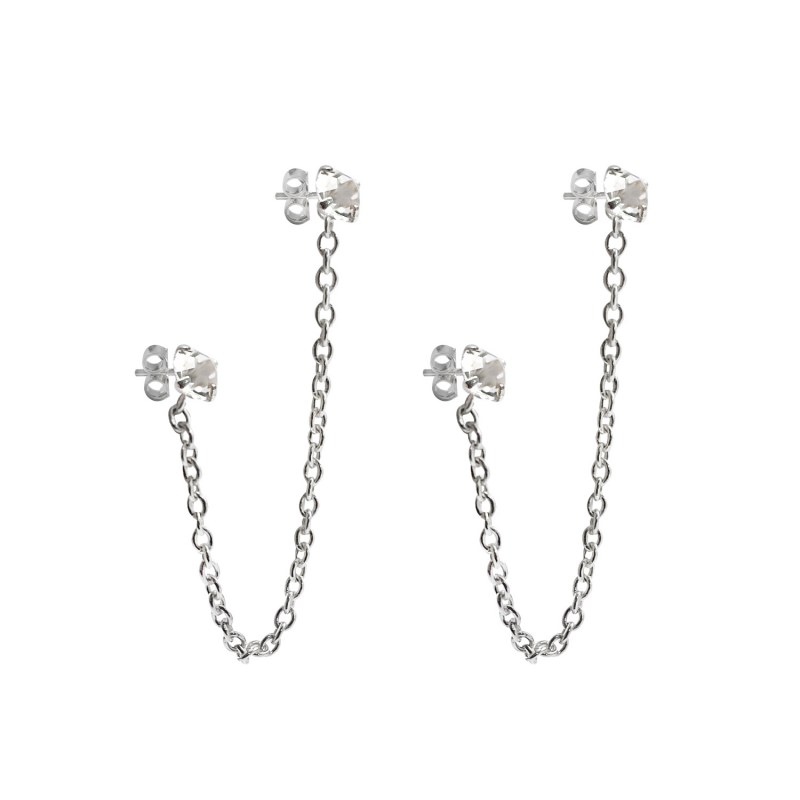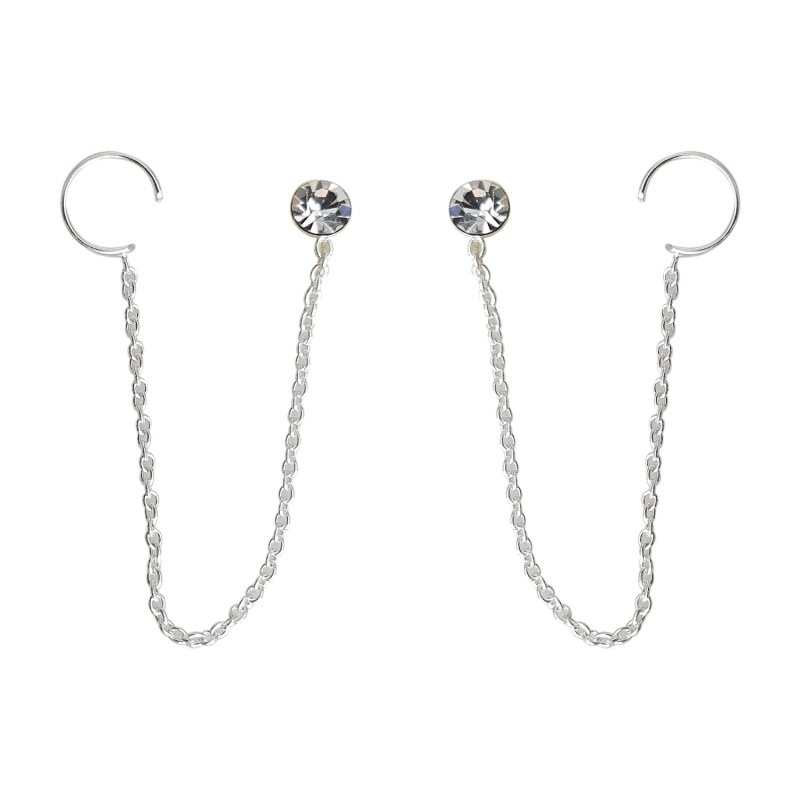 Aro bidú cadena y punto de luz color cristal Plata 925