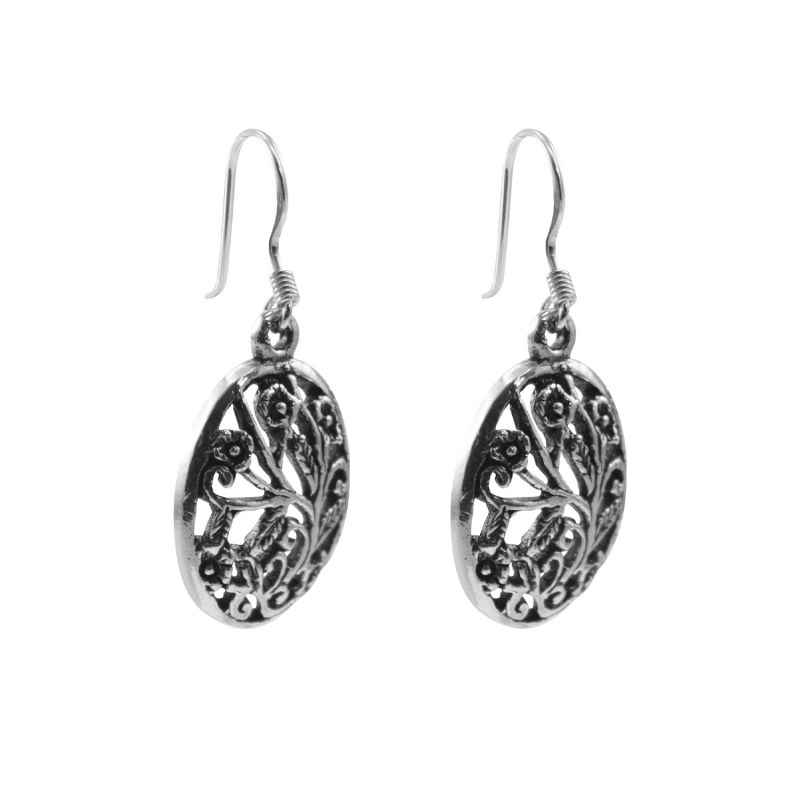 Aro largo envejecido con ramitas Plata 925