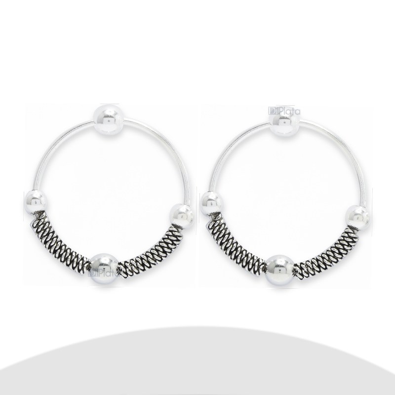 Aro largo diseño redondo con bolitas Plata 925