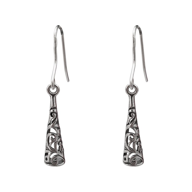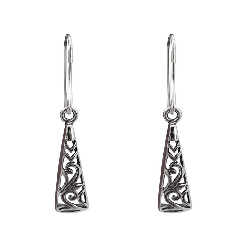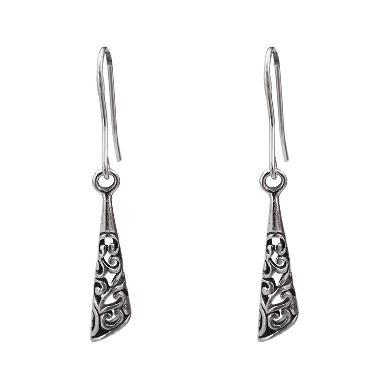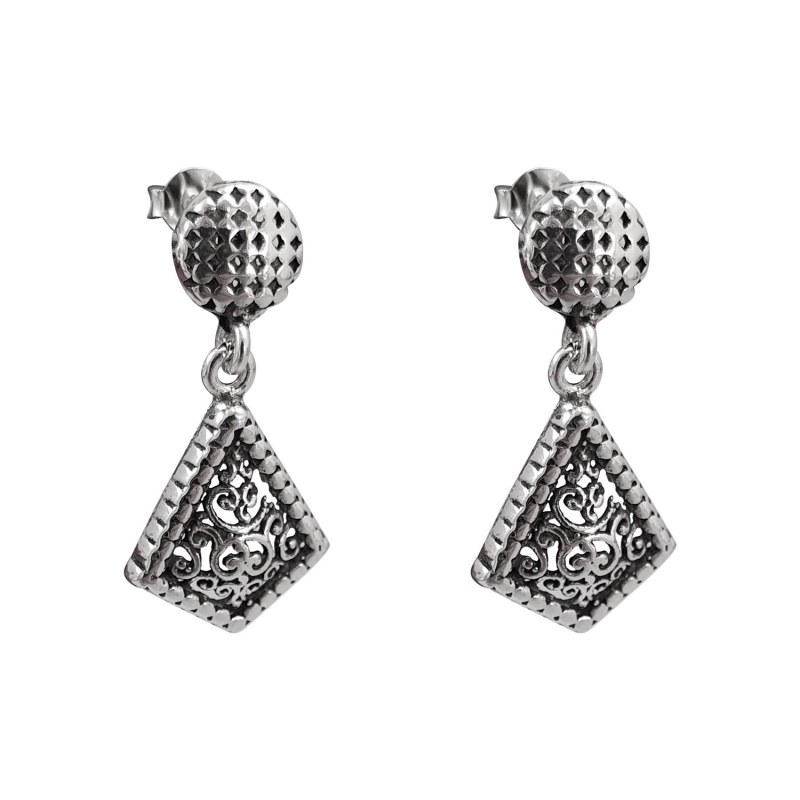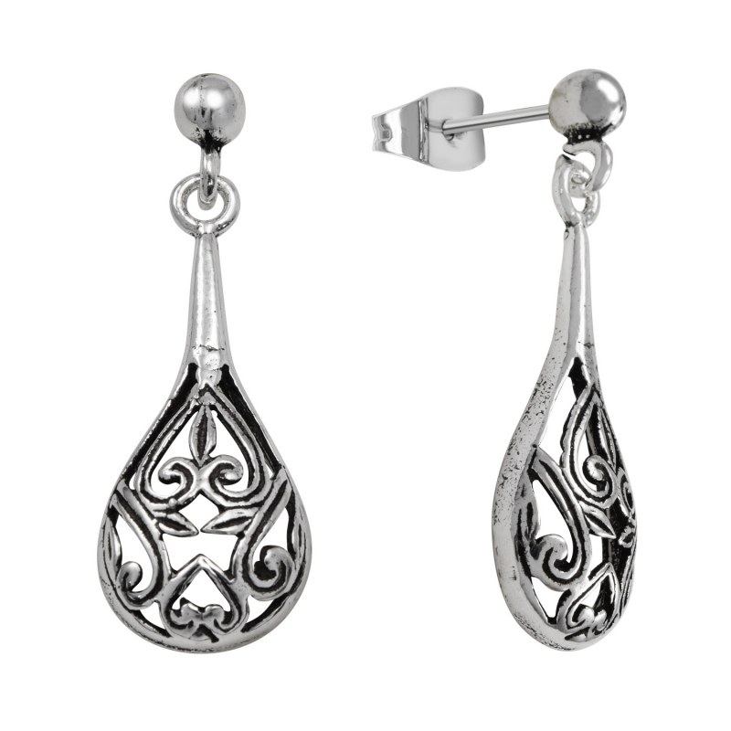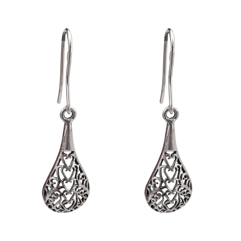 Aro largo diseño gota larga envejecido Plata 925