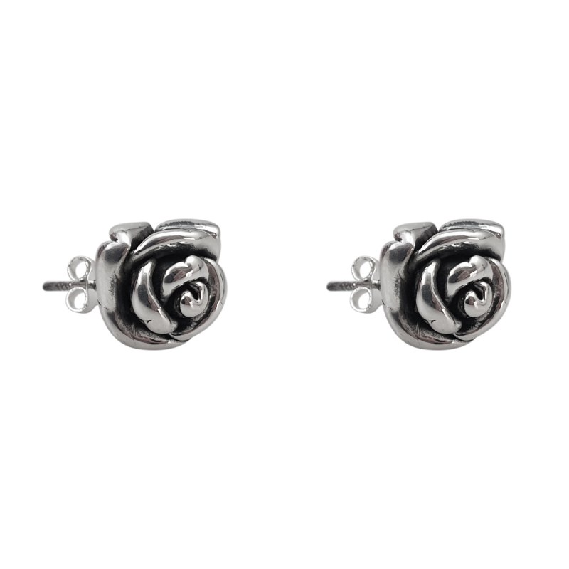 Aro apegado flor rosa envejecido 12mm Plata 925