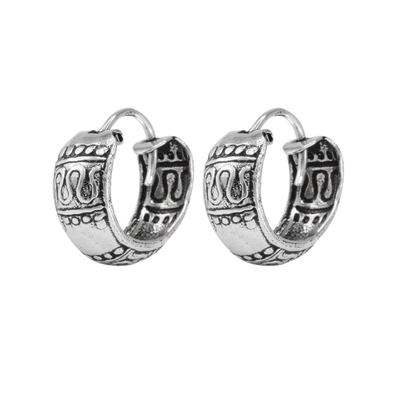 Aro argolla bote envejecido con diseño diam 12 mm Plata 925