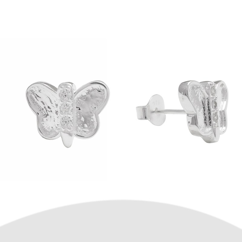 Aro pegado mariposa con tres circones diam: 13mm plata 925