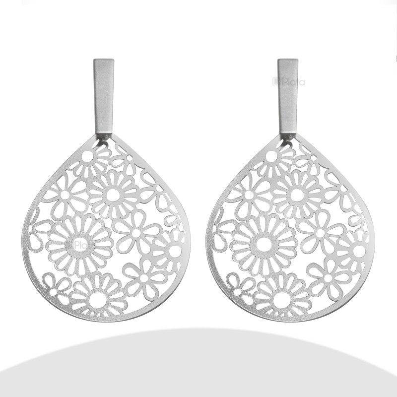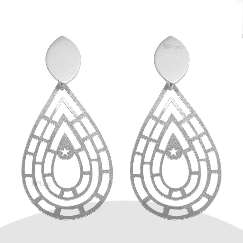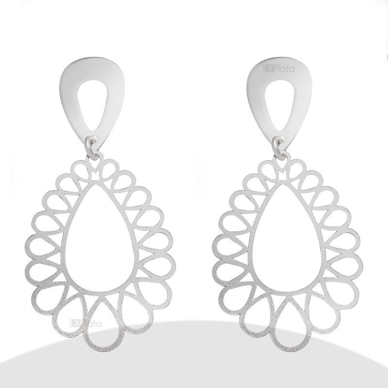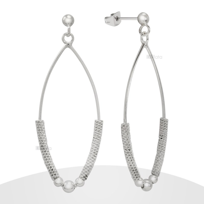 Aro largo mediano gota y con gotitas alrededor Plata 925