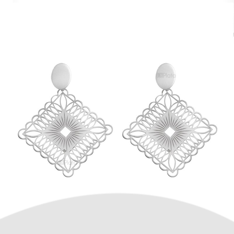 Aro diseño abanico con rejilla cierre tornillo mariposa Plata 925