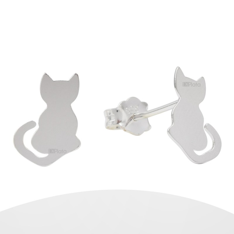 Aro gatito sentado de despalda liso cierre tornillo mariposa Plata 925