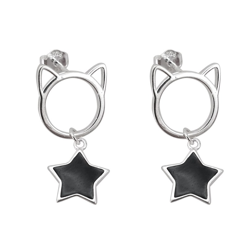 Aro gatito con estrella colgante color negro diámetro: 11mm Plata 925