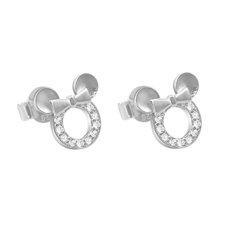 Aro cabeza de ratita con rosita y micro circones color cristal Plata 925