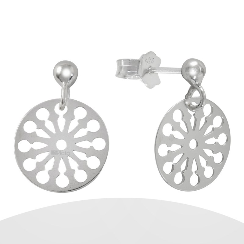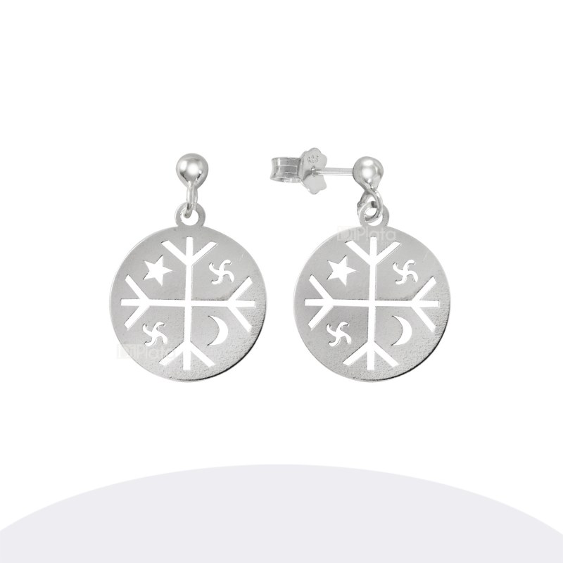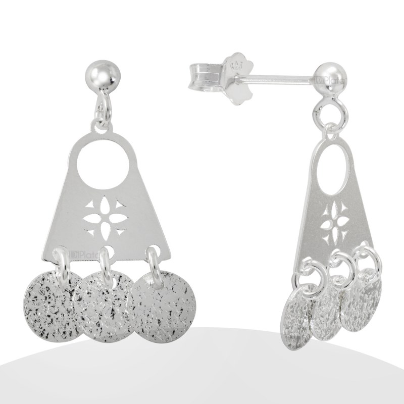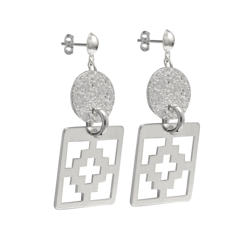 Aro mapuche cuadrado cruz andina y circulo satinado cierre tornillo mariposa Plata 925