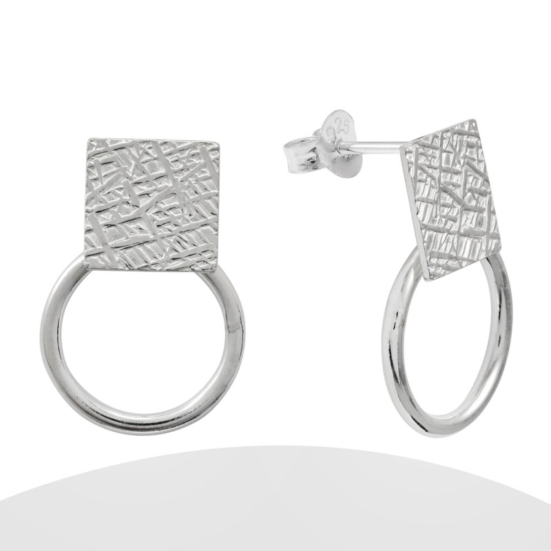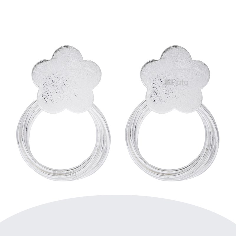 Aro satinado circulo y rombo 4,6 cm Plata 925