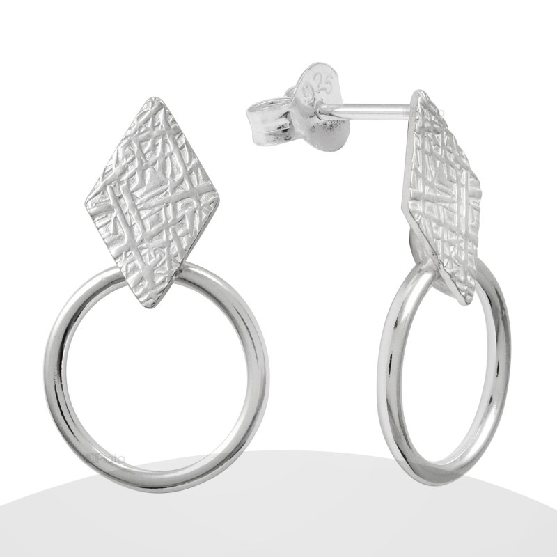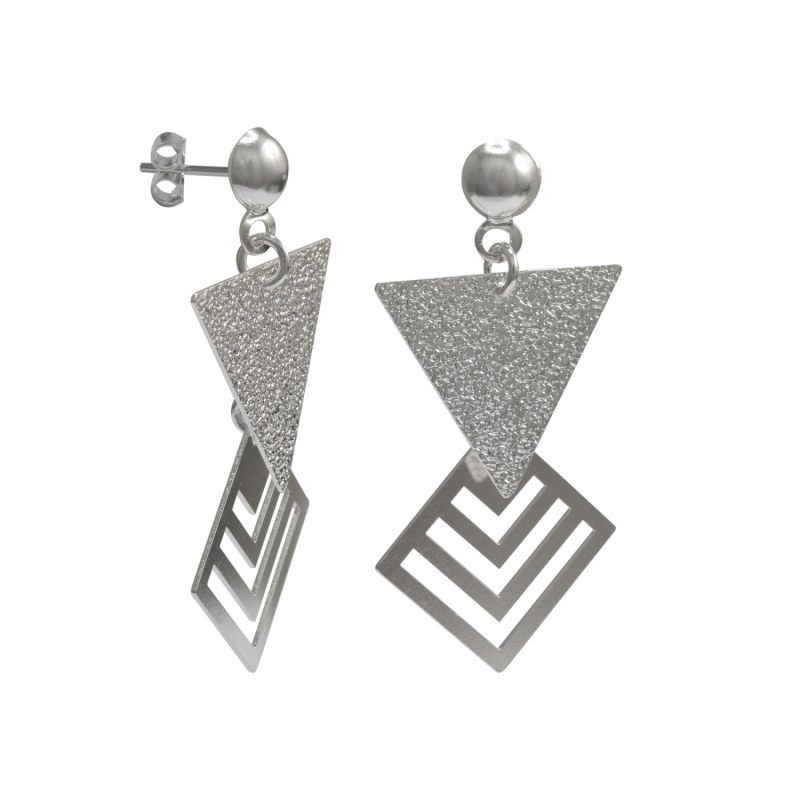 Aro largo mediano satinado y liso rombo triangulo Plata 925