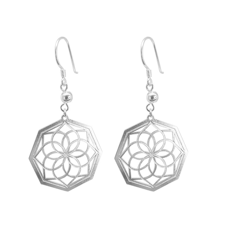 Aro gancho hexagonal flor mándala plata 925