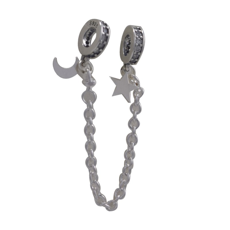 Charm Cadenas Seguridad Luna, Estrellas de Plata 925