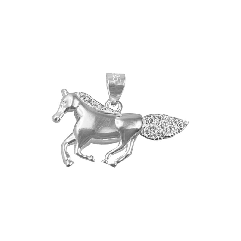 Colgante caballo corriendo con micro circones Plata 925