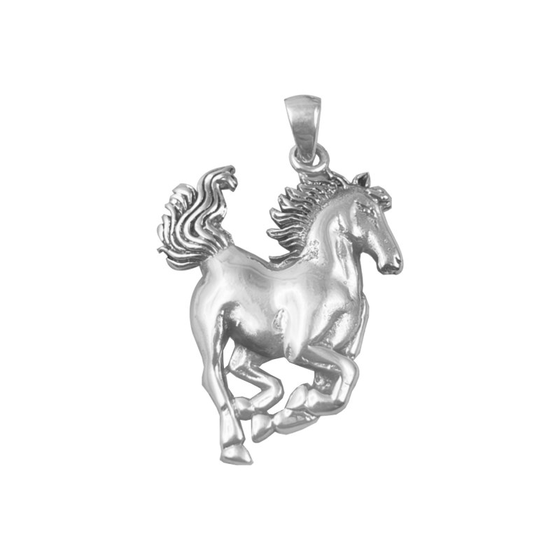 Colgante caballo corriendo envejecido medidas: 26x36 Plata 925