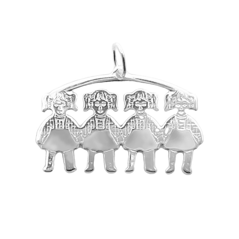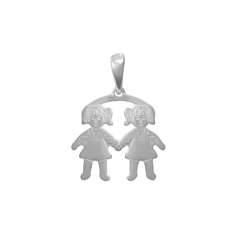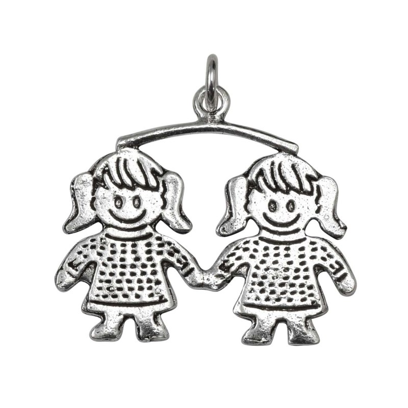 Colgante dos niñas envejecidos mediadas: 20x26mm Plata 925