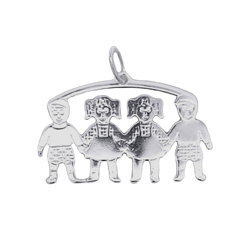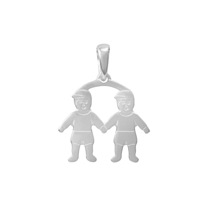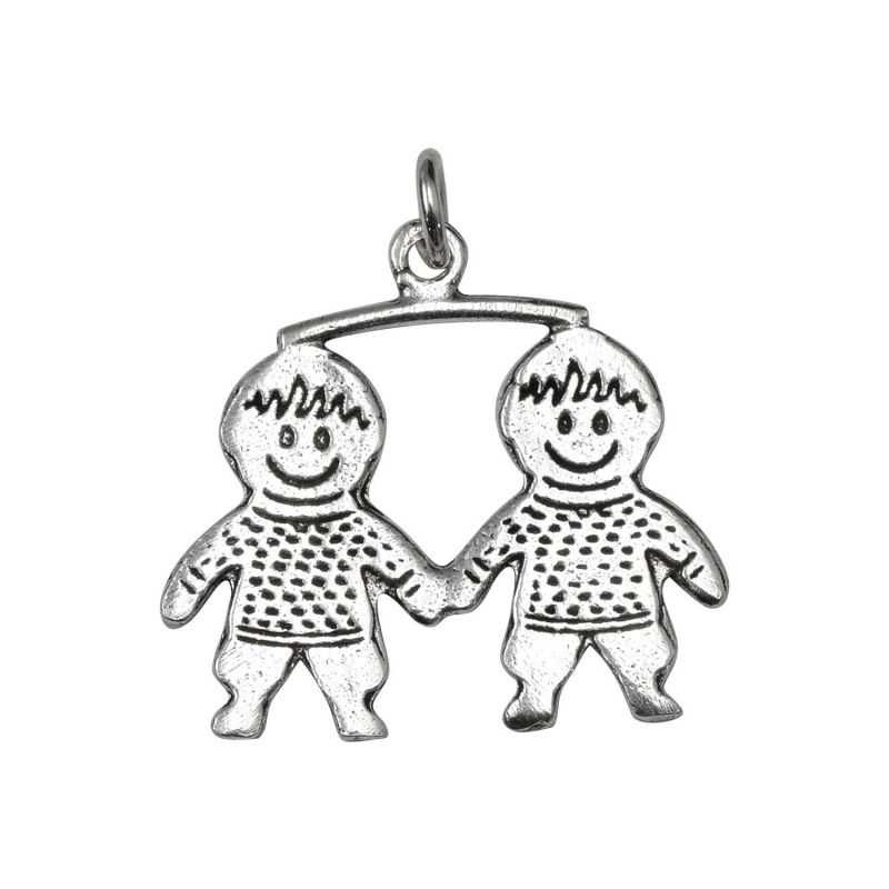 Colgante envejecido dos niños medidas: 18x22mm Plata 925