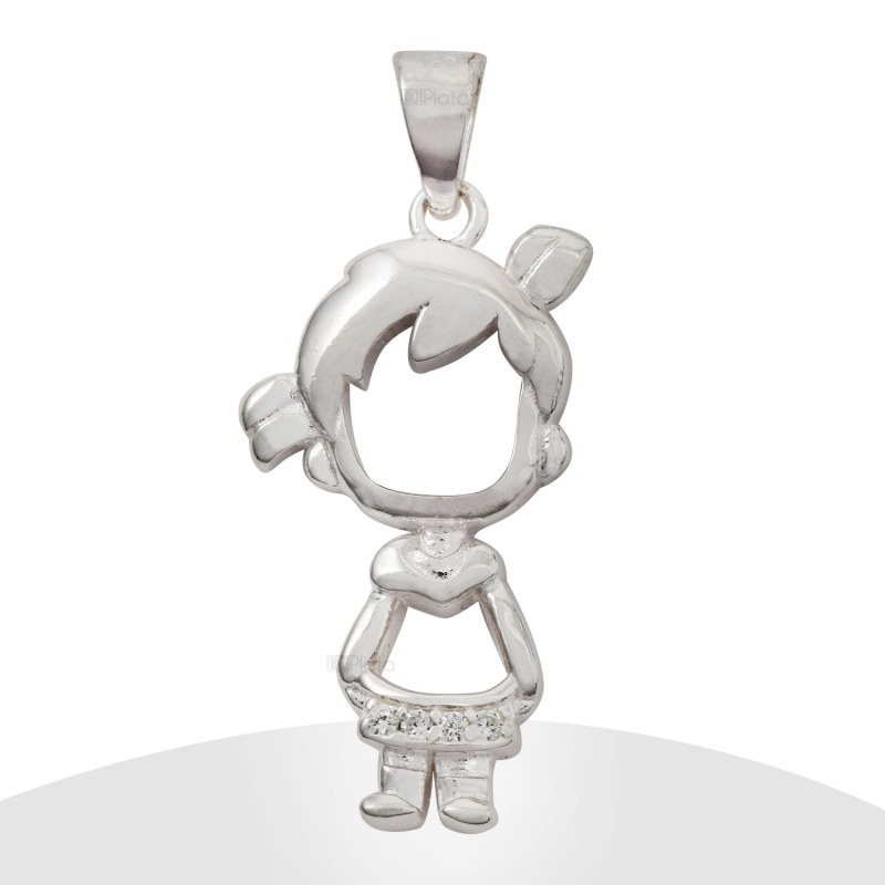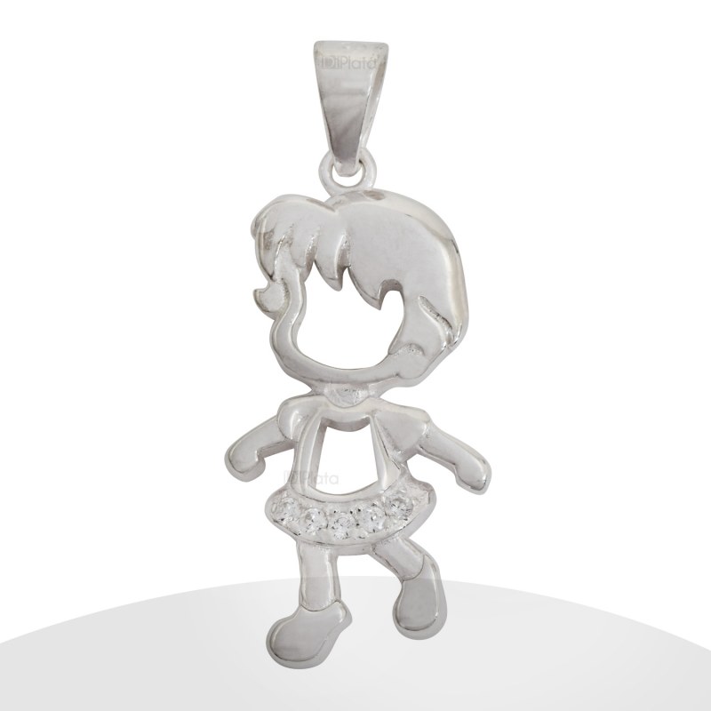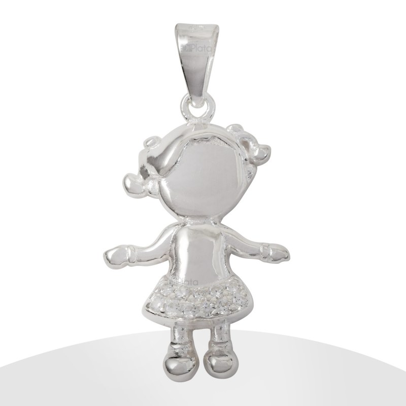 Colgante niña con falda micro circones alto: 21x11 mm Plata 925
