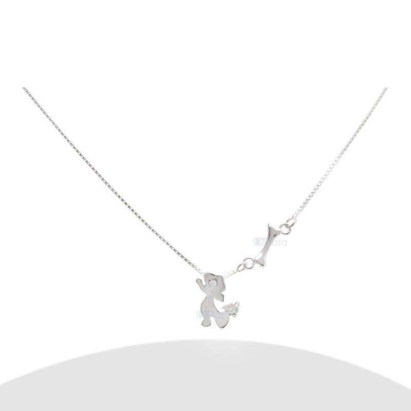 Collares colgante perrito hueso circón 45 cms mas extensión plata 925