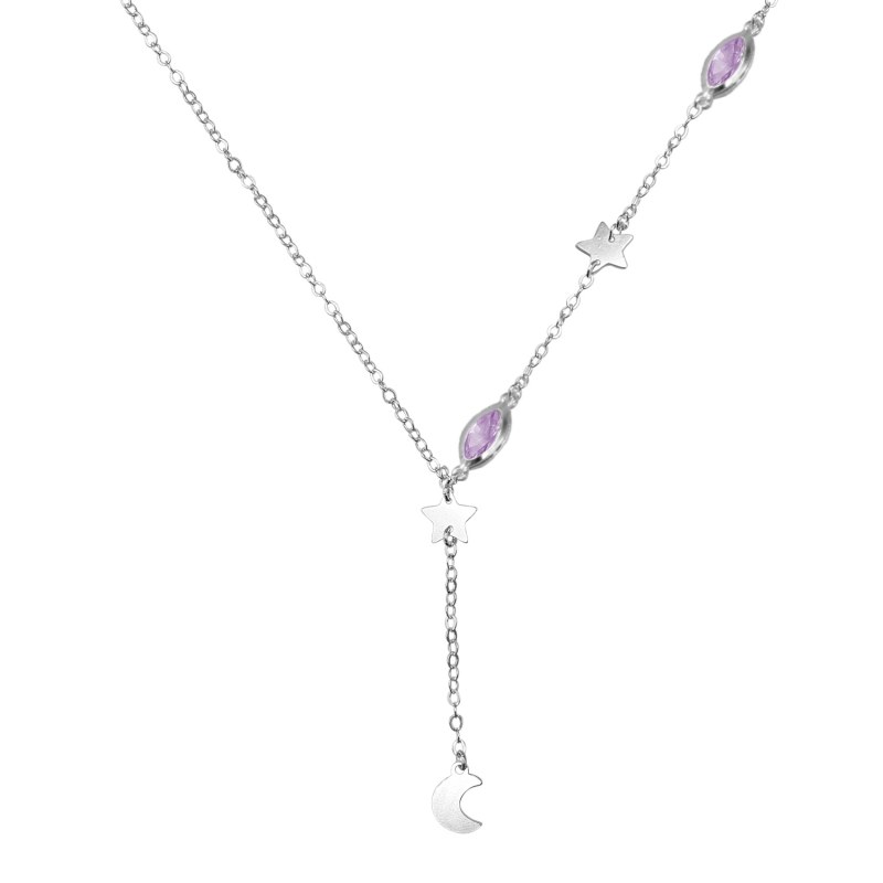 Collar estrellas de los vientos con miro circones color cristal 45cms Plata 925