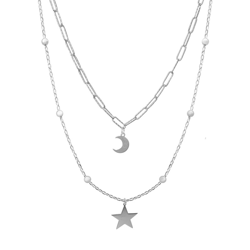 Collar doble cadena con luna cadenas de 45 y 55cms Plata 925