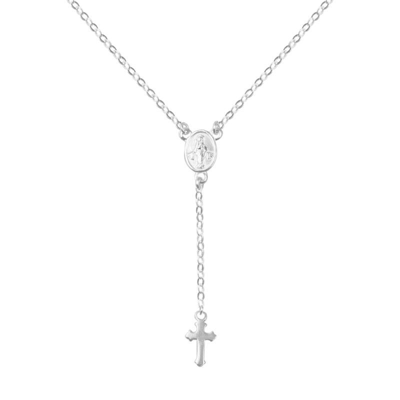Collares rosario largo: 40cms mas 7cms cadena con cruz Plata 925
