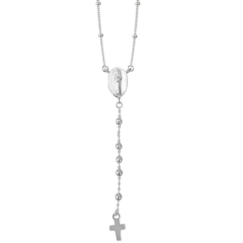 Collar rosario con bolitas y cruz 65cms mas 8cms extensión Plata 925