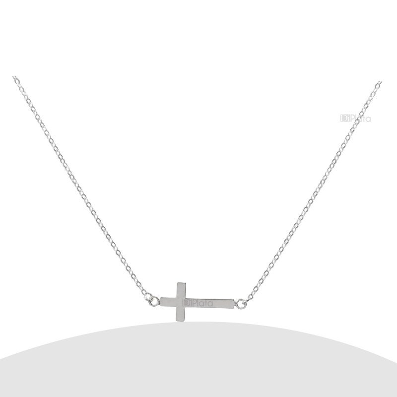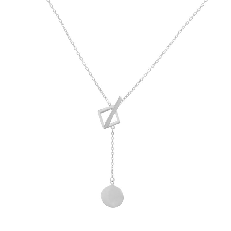 Collar colgante redondo cuadrado y barra lisa 55 cms mas extensión plata 925