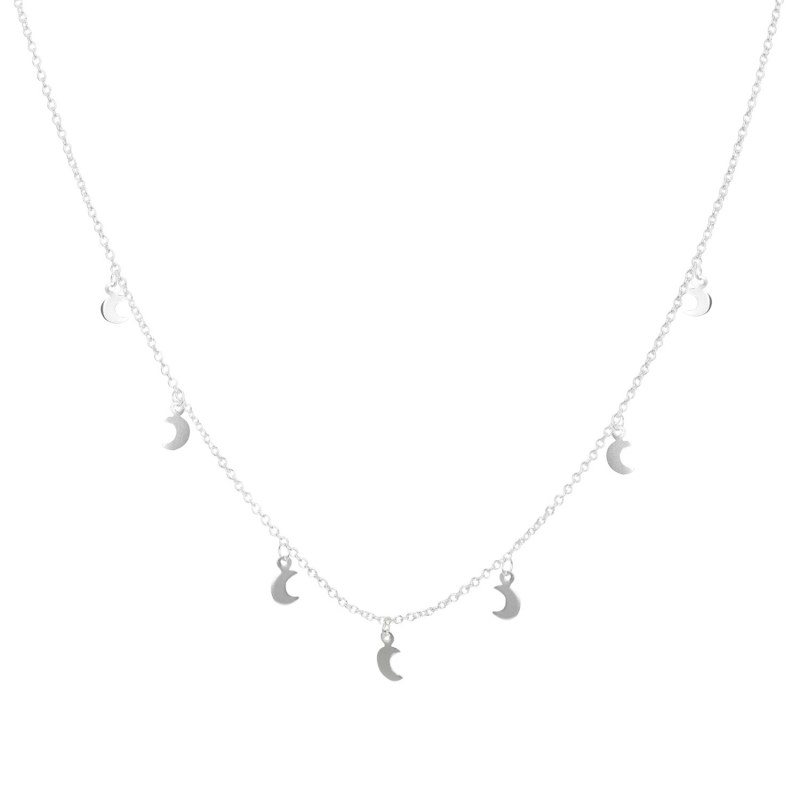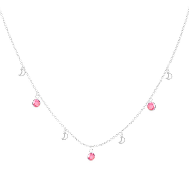 Collar circones rosados y lunas largo 45cm mas 3cms extensión plata 925