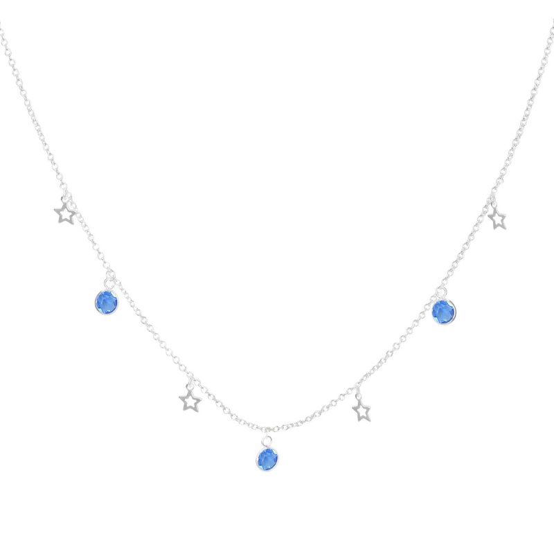 Collar circones azules y estrellas largo 45cm + extensión plata 925
