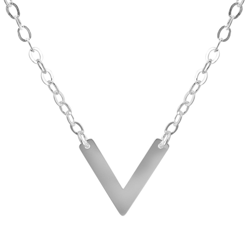 Collar letra V cadena martillada 45cms mas 5cms extensión plata 925