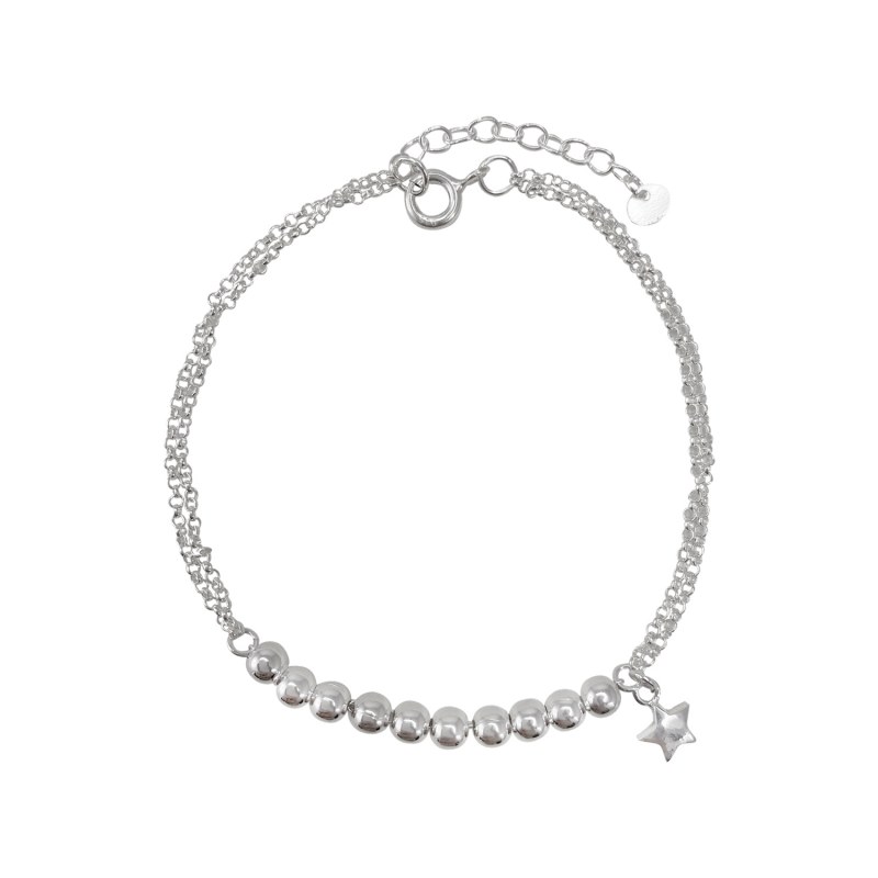 Pulsera bolitas estrella colgante y cascabel 19cms Plata 925