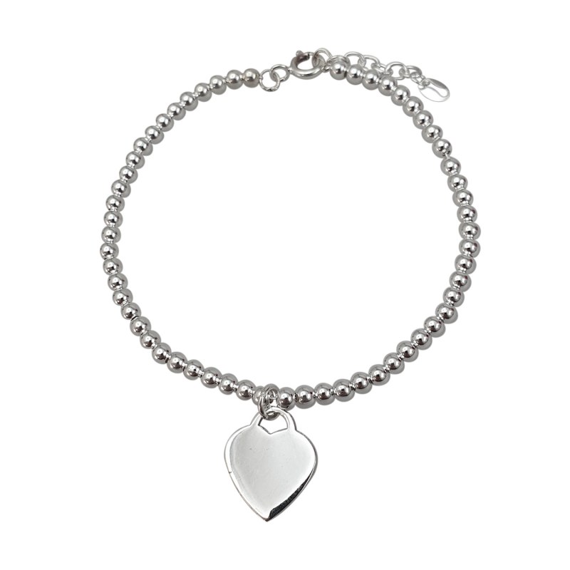 Pulsera bolitas y corazón colgante 17cms mas 2cms extensión plata 925